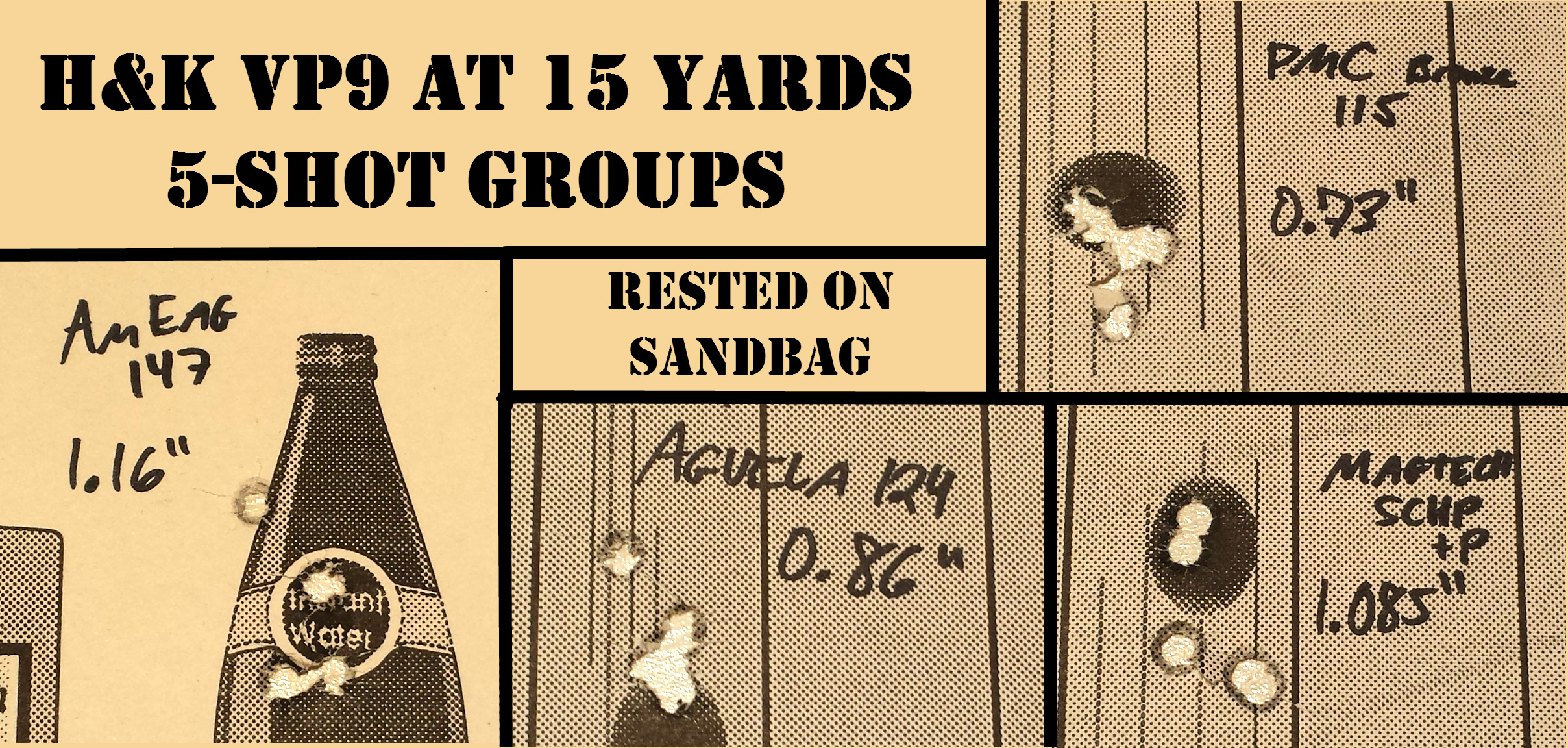 From a sandbag rest at 15 yards, the VP9 turned in some pretty darn solid, 5-shot groups: